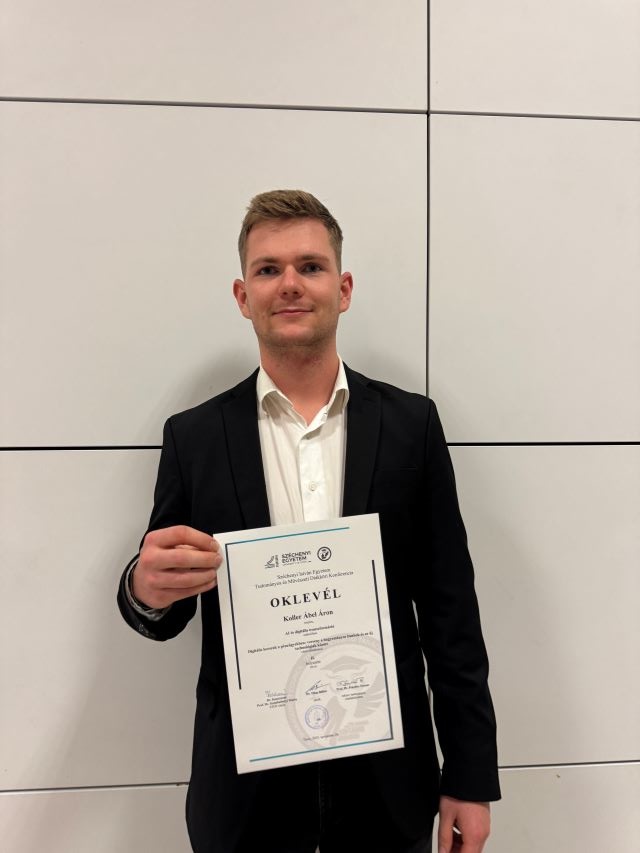Iskolánk 13. évfolyamos tanulója, Koller Ábel Áron rendkívüli eredményt ért el a Széchenyi István Egyetem Tudományos Diákköri (TDK) konferenciáján. Középiskolásként mérte össze tudását az egyetemistákkal, méghozzá kiemelkedő sikerrel: a saját szekciójában 2. helyezést szerzett, több egyetemi hallgatót megelőzve.