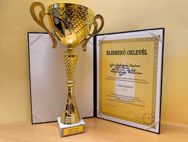 A versenyen az iskolák is megmérettetnek a tanulók teljesítménye alapján, így iskolánk második éve nyerte meg az OSZTV legjobb közgazdasági iskola címet. A Nemzetgazdasági Minisztérium oklevéllel és kupával ismerte el az iskolában folyó magas szintű szakmai munkánkat, és gratulált a kimagasló versenyeredményhez.