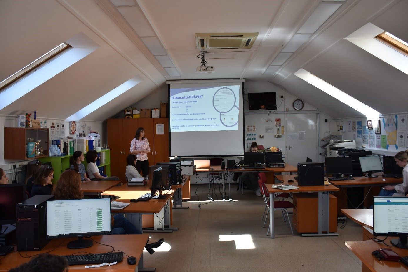 Április 16-án duális partnereinknek hirdettünk tanirodai bemutatót. A cégek képviselőinek bemutattuk a tanirodai képzést hazai és nemzetközi szinten, valamint a diákok ismertették az általuk alapított diákvállalkozást. A tanulók be is mutatták a gyakorlatban a tanirodai munkájukat, így a cégek képviselői meggyőződhettek róla, hogy felkészült diákok lesznek náluk gyakorlaton szeptemberben.